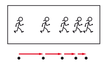 - لنفترض أن صاروخًا انطلق شمالًا لمدة 5 دقائق بسرعة ثابتة 120 مترًا بالدقيقة. لتحسب موقعه النهائي، استخدم قانون المسافة التالي “المسافة =السرعة x الزمن” وصيغته s = vt أو استخدم المنطق لإدراك أن الصاروخ الذي بدأ التحرك بسرعة 120 مترًا بالدقيقة واستمر في الحركة لمدة 5 دقائق، قد قطع مسافة = “600 مترًا شمالًا”؛ أي أنه على بُعد 600 مترًا شمالًا من نقطة انطلاقه، بعد انقضاء تلك المدة المحددة وحركته بالسرعة الثابتة المذكورة.